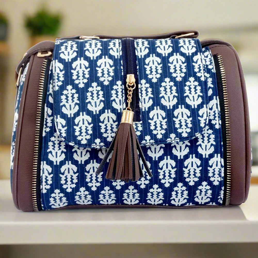 The quality of this Ethnic Printed Cotton & Leather Sling Bag is very good. Smooth, flexible, ethnic print and gorgeous looking this purse is liked by everyone. This bag has enough space to keep your essentials. Leather handle to hold the bag. This is an ideal bag for women and girls.