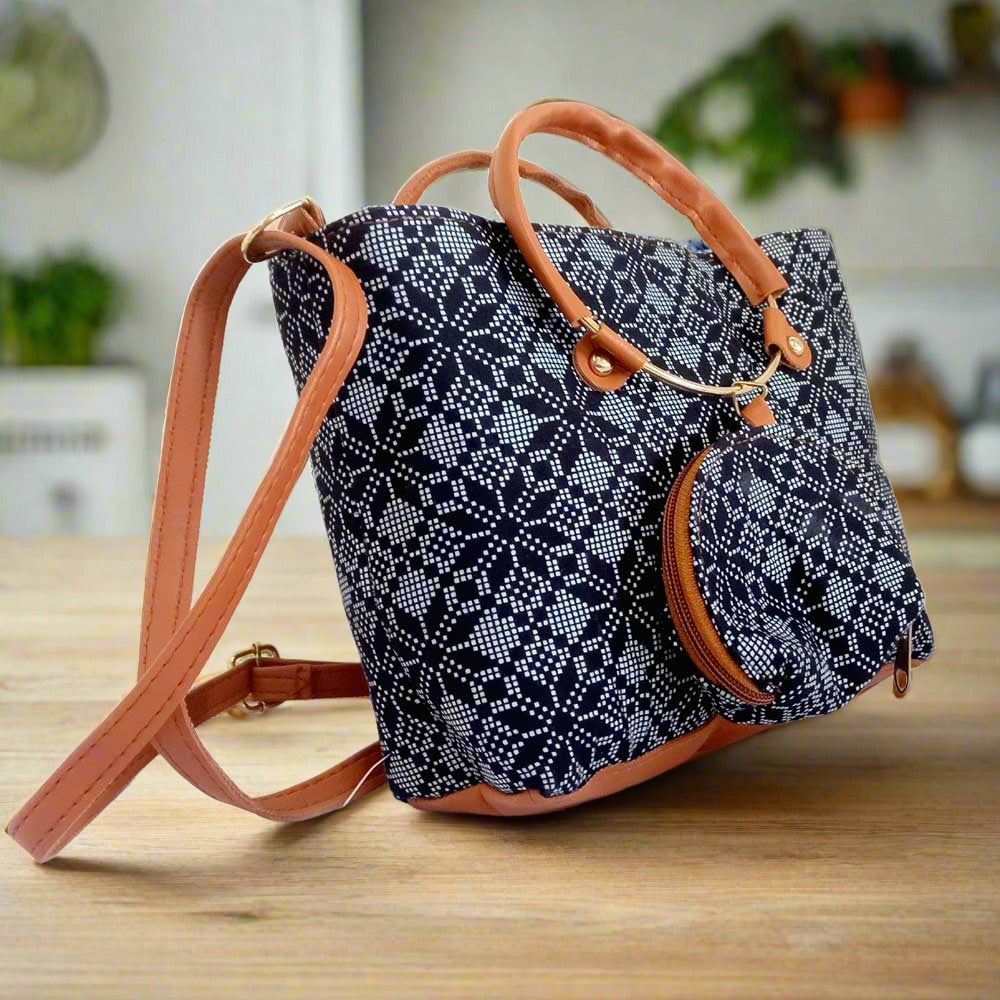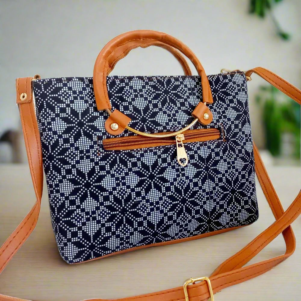 It is accompanied by a classic zipper wallet with sling bag made of fine quality cotton and leather. This bag has round handles, 2 main chains in which you can comfortably store your daily essentials. This bag is also a small zipper wallet in which you can keep money. Its design is also very attractive. Ideal for Shopping, Movies, Party, Office, Travel, or just for everyday use, this is a classic and great looking bag.